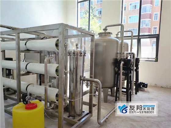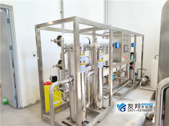 反渗透设备是采用膜法分离的水处理技术,是自然界中渗透现象的逆过程(对含盐水以外界推动力克服渗透压而使水分子通过膜的逆向渗透过程)。反渗透水处理工艺基本上属于物理脱盐方法,它在诸多方面具有传统的水处理方法所没有的优点。反渗透是在室温条件下,采用无相变的物理方法将含盐给水进行脱盐、纯化。目前,超薄复合膜元件的脱盐效果好,并可同时去除水中的胶体、有机物、细菌、病毒等。该设备是友邦专为渑池仰韶酒厂定制的,用于制酒用水。