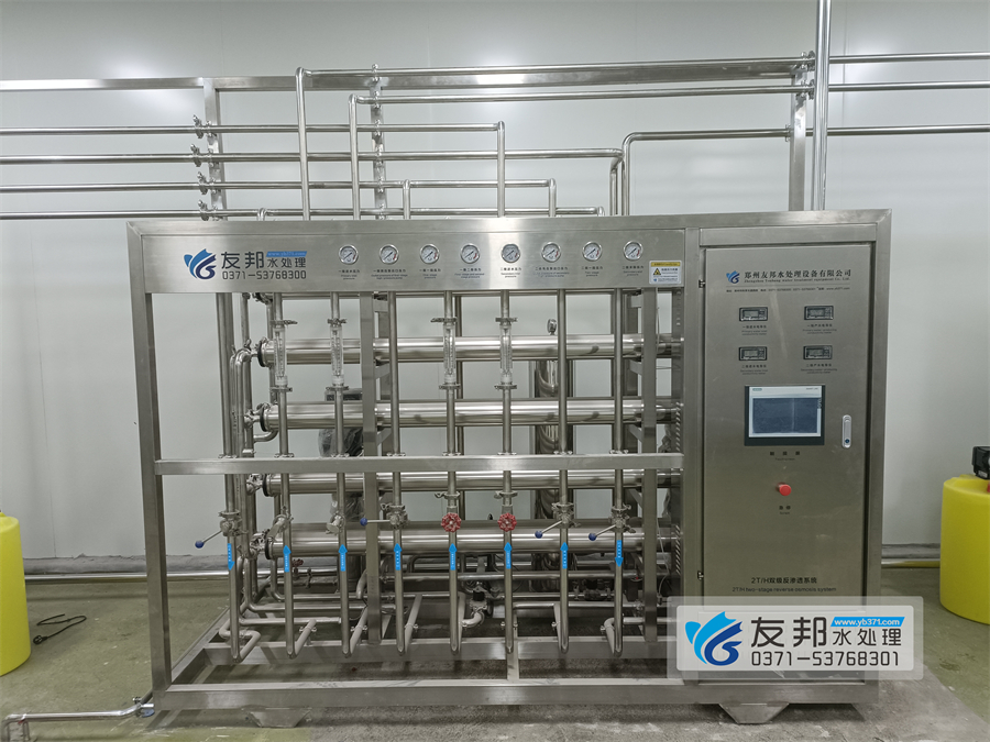 反渗透技术是当今最先进和最节能有效的膜分离技术。反渗透是一种以压力为推动力,通过选择性透过膜将溶液中的溶质和溶剂分离的应用技术。由于反渗透膜的膜孔径非常小,因此能够有效地去除水中的溶解盐类、胶体、微生物、有机物等(去除率高达97%-98%)。反渗透是目前高纯水设备中应用最广泛的一种脱盐技术,它的分离对象是溶液中的离子范围和分子量几百的有机物。