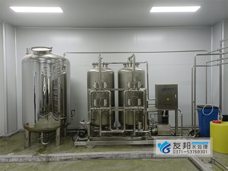 原水先进入前置泥沙过滤系统,再进入反渗透除盐过滤系统,过滤后进入纯水箱,以达到使用标准。