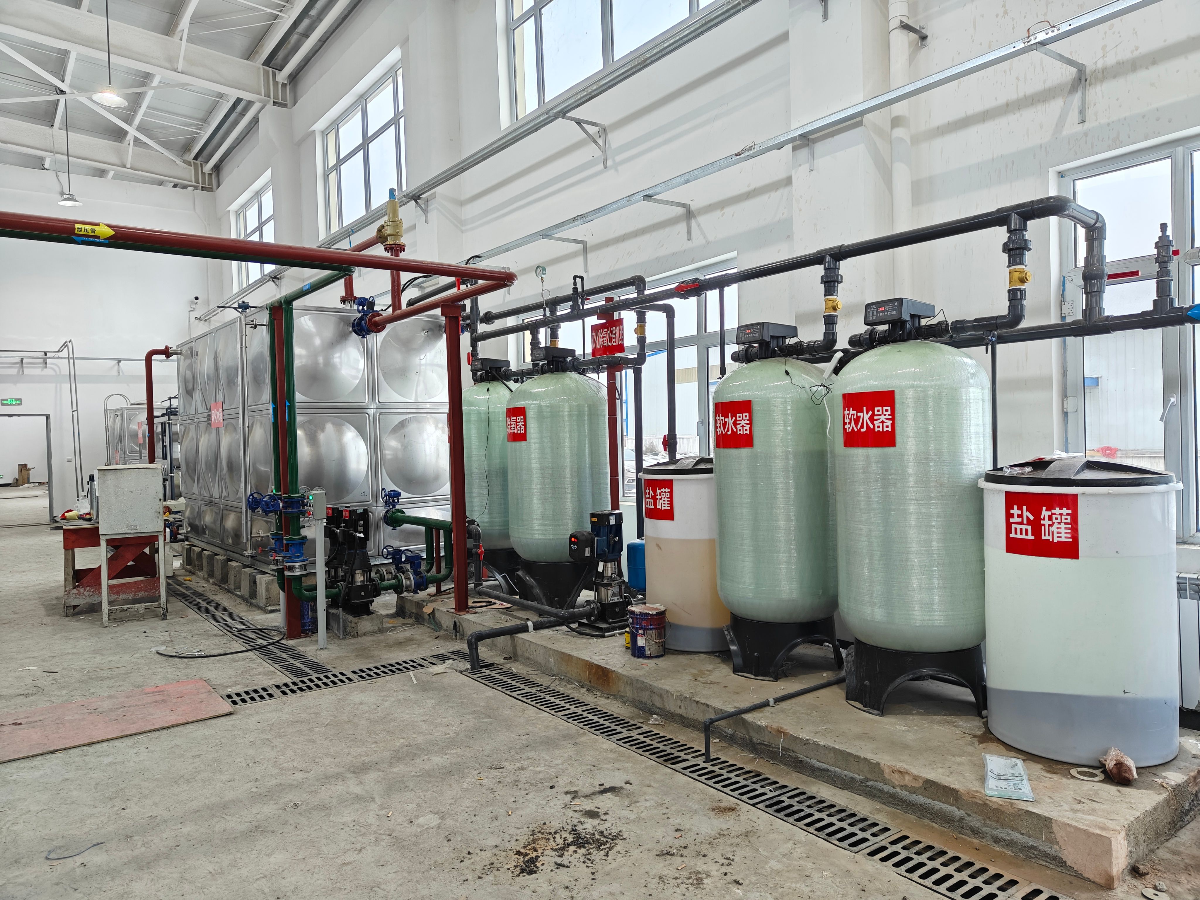 一套完整的水处理系统由预处理系统、精处理系统、后处理系统三大部分组成。首先,为了保证纯水设备不受损害必须对原水进行预处理,采用精密过滤器方式,避免投加药剂对水质造成污染;后对水质进行深度杀菌处理,保证应用水质满足生产需求。原水经石英砂单元、活性炭单元等预处理系统后,使水中的悬浮物(颗粒物质)、胶体、有机物、硬度、微生物等杂质含量大大降低,以减轻后续的反渗透、电除盐等精处理系统的处理负荷,延长其使用寿命。
