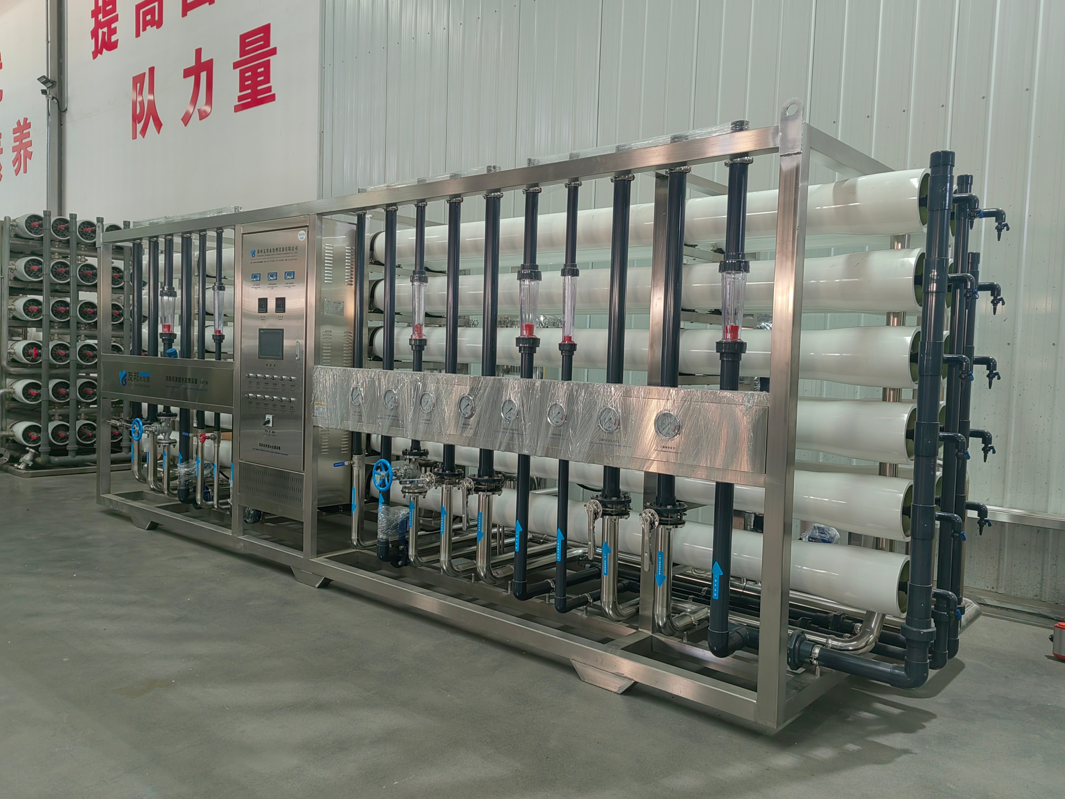 反渗透系统:由高压泵、反渗透膜组件、反渗透膜壳、冲洗装置等组成。高压泵为反渗透膜提供足够的压力;反渗透膜组件是实现反渗透过程的核心部件;反渗透膜壳用于容纳反渗透膜组件;冲洗装置定期对反渗透膜进行冲洗,防止膜污染。