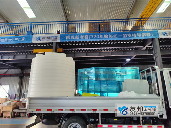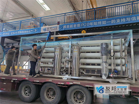 郑州友邦工厂里发往漯河的2吨水处理设备正在装车发货中。 该设备优点如下:1.透水性大,脱盐率高,正常条件下为99%; 2.反渗透膜为进口辊式复合膜。薄膜材料[查看详情]