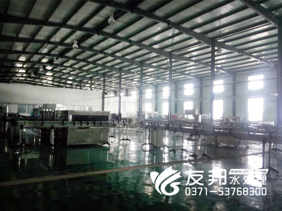河南友邦瓶装水灌装线的灌装作业。本机将冲洗、灌装、封口功能合在一个机体上,全过程实现自动化,适用于聚酯瓶、塑料瓶灌装矿泉水、纯净水。各部分的适用瓶型调整轻松自如,简便快捷。灌装方式采用了新型的微负压灌装,稳定可靠,所以与同规格的机器相比,梧桐的效益更大。本机采用了可编程控制器(PLC)控制机器的自动运行,进瓶采用风送装置,输出瓶链道采用可调速方式,与主机变频器相互配合使用出瓶运行更稳定可靠。光电检测各部件的运行状况,所以自动化程度高,操作简便。