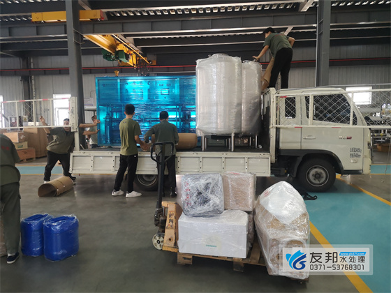 郑州友邦水处理设备发货日常:山西河津10吨反渗透纯净水设备发货[查看详情]