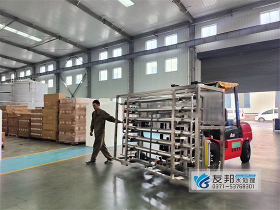 郑州友邦工厂里发往漯河的2吨水处理设备正在装车发货中。 该设备优点如下:1.透水性大,脱盐率高,正常条件下为99%; 2.反渗透膜为进口辊式复合膜。薄膜材料[查看详情]
